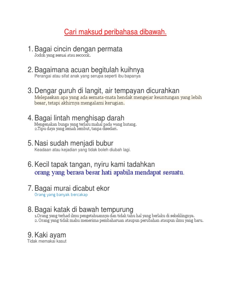 Peribahasa Dan Maksud Worksheet
